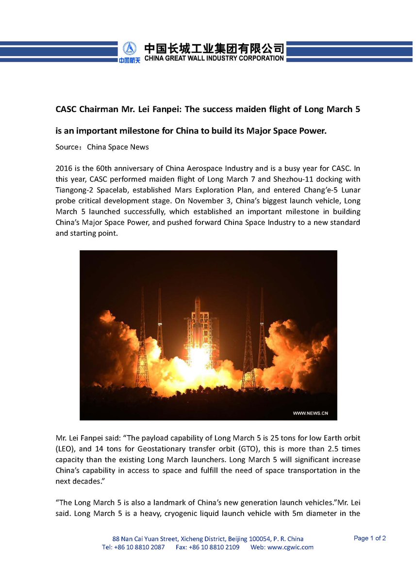 Starty TG-2, SZ-11, a także dziewiczy lot LM-5 już za nami. Ostatnie sukcesy dodały skrzydeł Chińczykom, co widać z wypowiedzi Lei Fanpei, szefa CASC, opublikowane przez CGWIC Europa: [...]