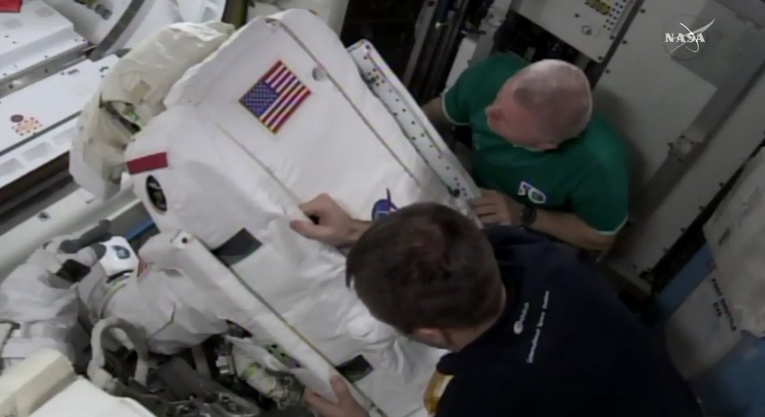 Zaraz zaczyna się spacerek! Aktualnie kończy się instalacja sprzętu na kombinezonach dzisiejszych spacerowiczów. Oglądamy? :)