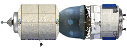 W Związku Radzieckim też od dawna myślano o nowym statku załogowym dostosowanym do nowej koncepcji rozwoju astronautyki. Jeszcze z przełomu lat 60. i 70. wywodziła się konstrukcja statku znanego pod kodowa nazwą TKS (транспортный корабль снабжения), który kilkakrotnie był w kosmosie w latach 70. i 80., ale nigdy z załogą. Była to stosunkowo zaawansowana konstrukcja, w skład której wchodził duży moduł orbitalny, który sam mógł tworzyć małą stację orbitalną (rys. 2).