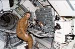 "I remember Alan saying, 'Okay, Owen, you're on your way,' [and he] just turned it loose," recalled Garriott. "It [was] surprisingly intuitive. With just a modest amount of training in how to fly a spacecraft with a translation and attitude control thruster, you could fly around ... making turns all the way around."