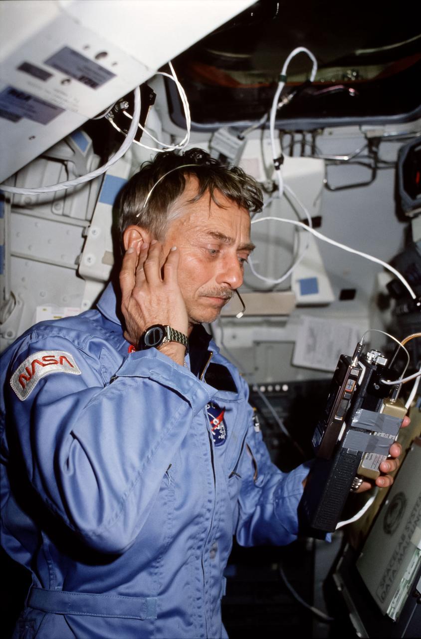 STS-9 mission specialist Owen Garriott uses a ham radio on space shuttle Columbia to contact radio operators on Earth. (NASA)"The whole mission was oriented towards making clear that the Spacelab, the laboratory that fit in the payload bay of the shuttle, was useful for the whole range of scientific disciplines," Garriott told NASA. "So not only a lot of biomedical work, but also astronomy, fluid physics, materials processing, atmospheric sciences, all were represented with differing experiments."