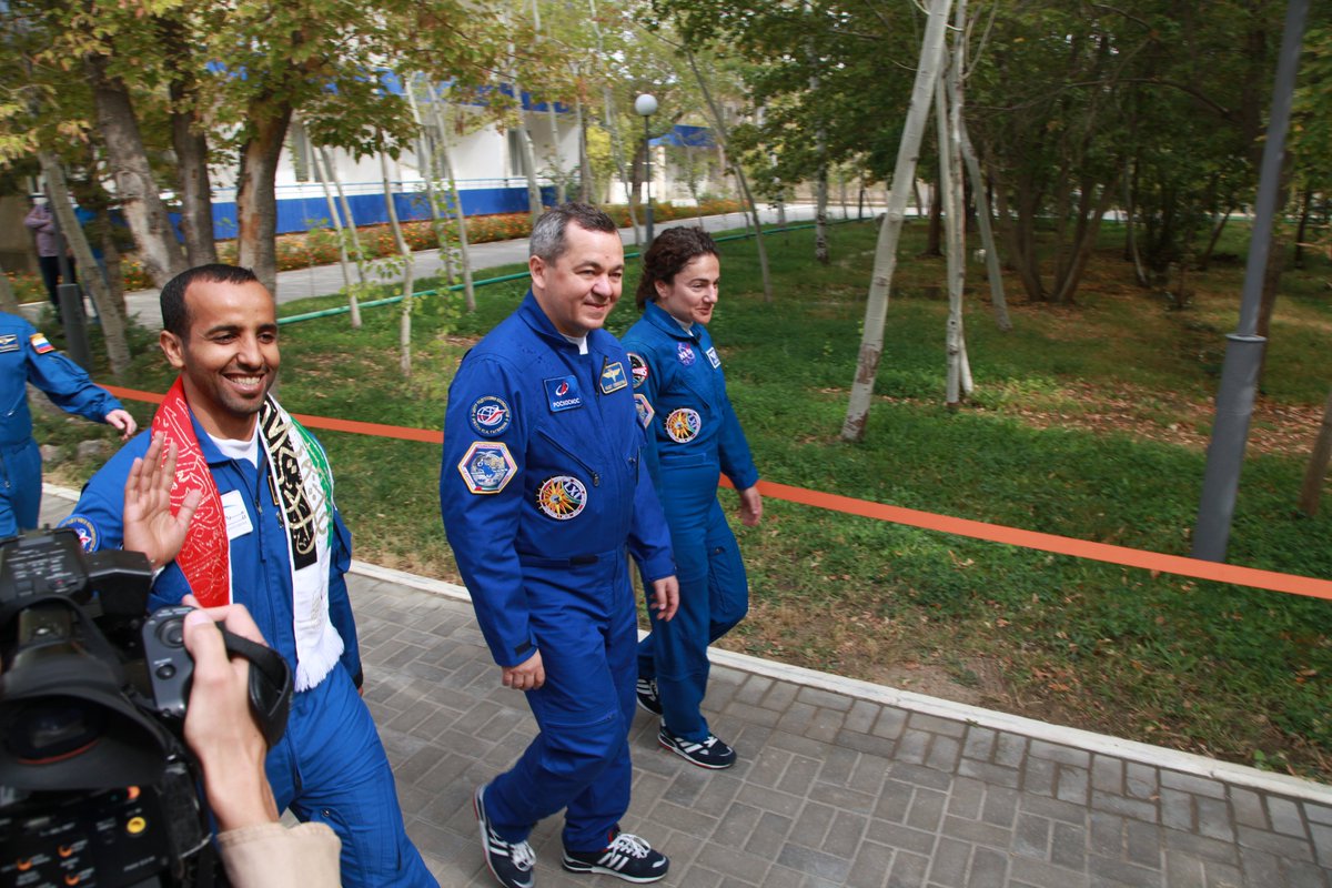 — Каждый командир старается включить в эмблему корабля какие-то знаковые для него символы. Помимо фамилий членов экипажа на национальном языке, флагов стран-участниц полёта, знака Роскосмоса и надписи «Союз МС-15» что Вы включили в эмблему и почему?— Когда разрабатывалась эмблема, мне хотелось сохранить определённую преемственность с первым полётом. Всё-таки когда первый раз летишь, остаются наиболее яркие впечатления. Поэтому у нас та же форма эмблемы