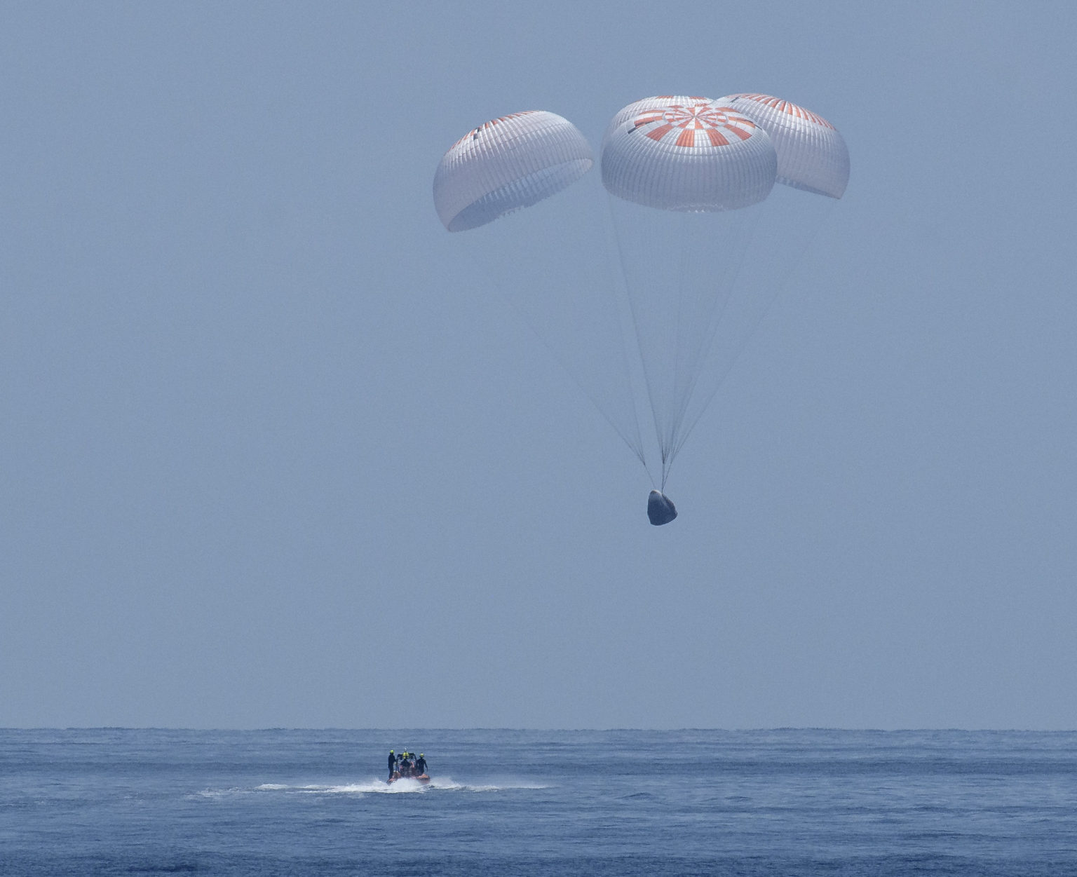 02.08.2020 o 18:47:47 zwodowała na Atlantyku w Zatoce Meksykańskiej kapsuła powrotna statku kosmicznego Crew Dragon "Endeavour" po misji DM-2.