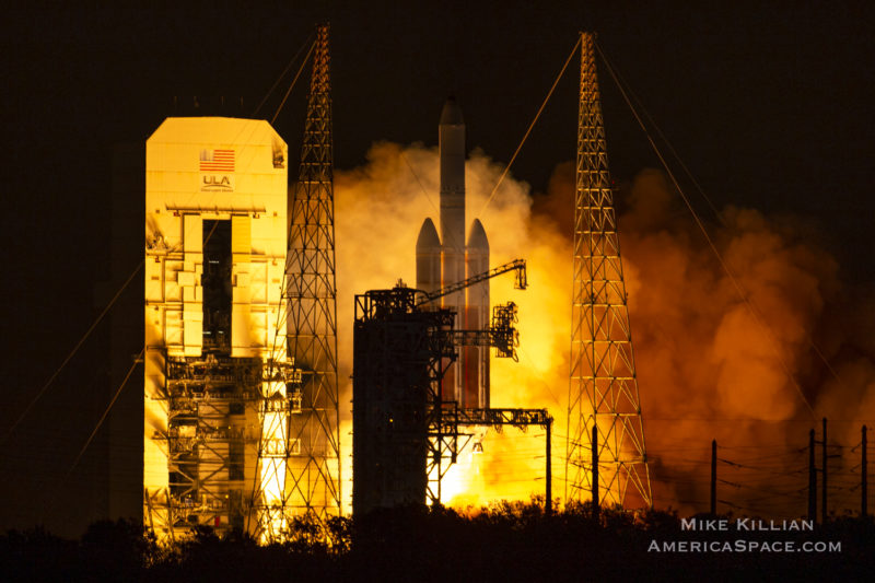 It was the 12th launch of a Heavy since December 2004, marking the beginning of the end for an impressive rocket which has now lifted eight classified NRO payloads, NASA’s Parker Solar Probe, the final Defense Support Program (DSP) early-warning satellite and the inaugural voyage of the Orion deep-space exploration vehicle. But tonight’s mission with NROL-44, despite all the media attention it has received for the wrong reasons since August, is completely shrouded in mystery.