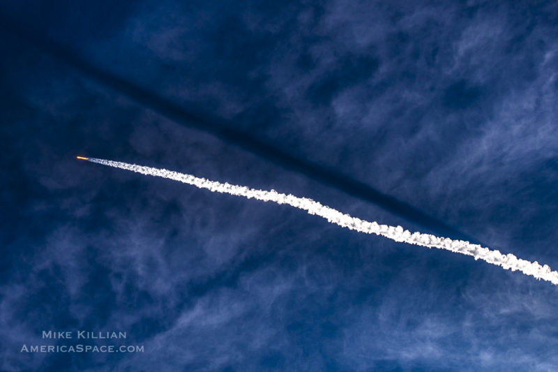 Falcon 9 roars to space with their 17th Starlink mission from Kennedy Space Center on Jan 20, 2021. Photo Credit: Mike Killian / AmericaSpace.comAfter almost two years, SpaceX successfully passed the magical number of 1,000 Starlinks launched to orbit today, when the veteran B1051 core—the first Falcon 9 to record an eighth launch—roared aloft from historic Pad 39A at the Kennedy Space Center (KSC) in Florida, carrying a 60-strong “batch” of these flat-packed internet communications satellites. With today’s launch, 1,013 production-design Starlinks have been put into orbit since May 2019.