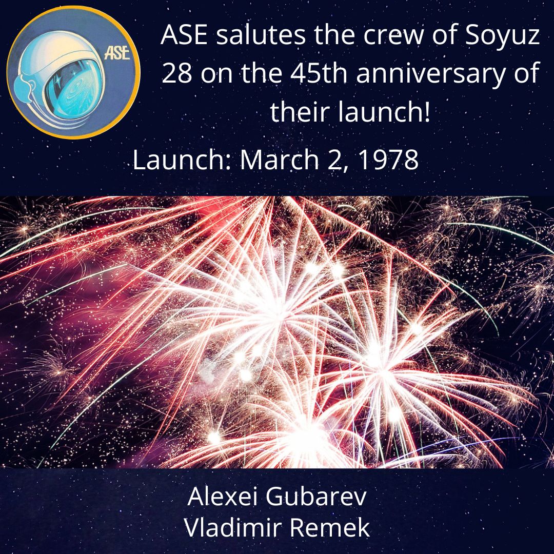 Soyuz 28 launched on March 2, 1978, with ASE members Alexei Gubarev and Vladimir Remek aboard!