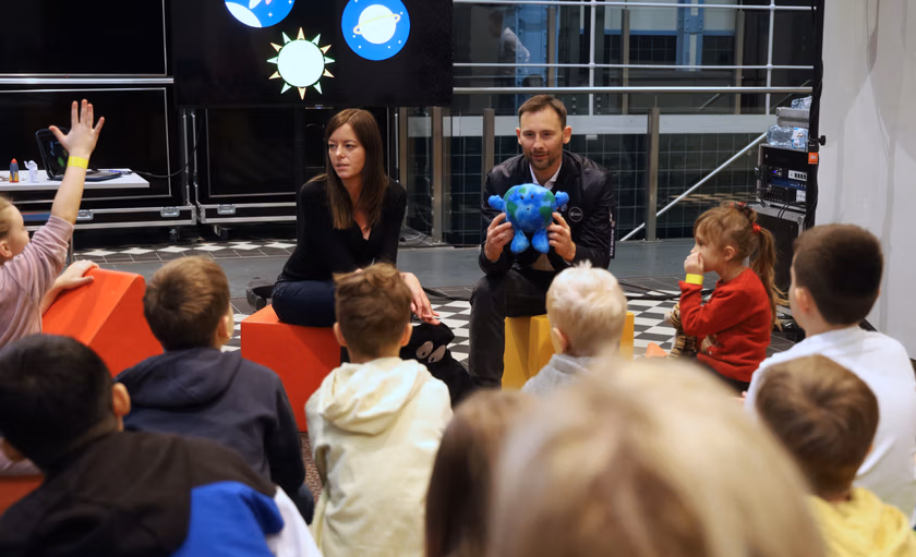 Sławosz Uznański podczas pikniku rodzinnego "Stacja Łódź – odkryj kosmos z polskim astronautą"