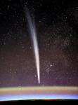 Comet Lovejoy in near-infrared from @ISS on December 26, 2011 (1st photo) and normal visible image taken on December 22, 2011 (2nd photo).  I was surprised that in this instance, the Ir image did not reveal any remarkable detail, actually less detail, than the normal visible image. Nikon D3s with ir-blocking filter replaced with fused silica window, 58mm f1.2, ISO 6400, 0.77 sec and D3s un-modified, (this image by fellow crew mate Dan Burbank).