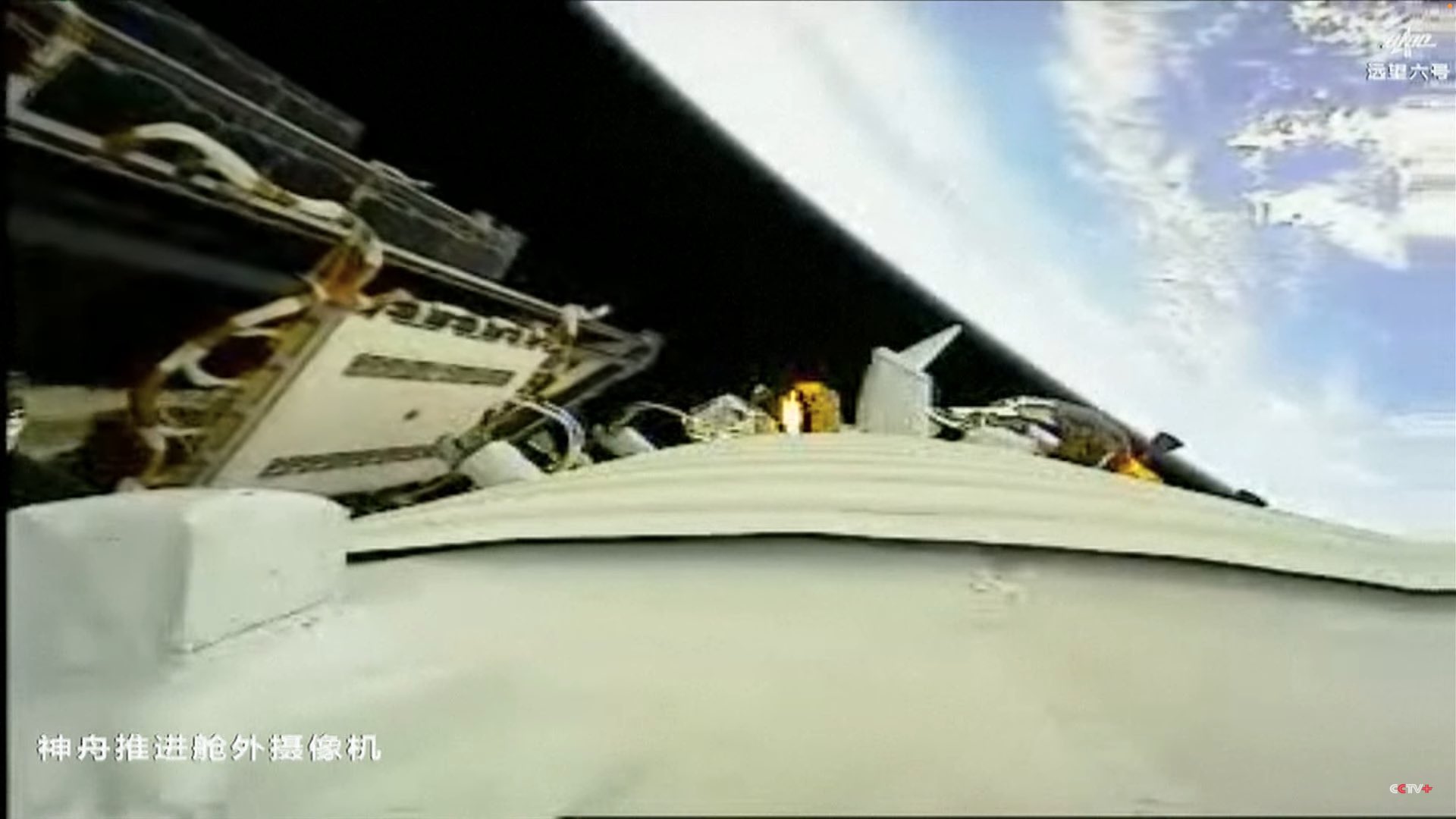 Shenzhou 17: Vernier engine shutdown; Shenzhou separation; solar array deploy confirmed; the Shenzhou 17 crew is safely in orbit and on the way to the Tiangong space station; docking is expected in about 6.5 hours