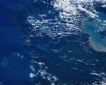 Panama Canal with sun glint (1st photo) and without (2nd photo). The Panama Canal is elusive. It is typically shrouded in clouds. Being close to the equator, we only get a near-perpendicular view about once every 10-11 days. Due to the clouds, having a clear canal view only once per mission is the norm.