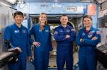jsc2025e012277 (February 25, 2025) --- The crew members of NASA’s SpaceX Crew-10 mission (from left) mission specialist Kirill Peskov of Roscosmos, NASA astronauts Nichole Ayers, pilot, and Anne McClain, commander, along with Mission Specialist Takuya Onishi of JAXA (Japan Aerospace Exploration Agency), pose for a picture during training at NASA’s Kennedy Space Center in Florida. Credit: SpaceX